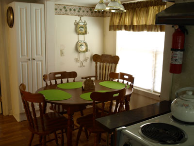 The complete, furnished Kitchen comes with oven, microwave, full-sized refrigerator/freezer, coffee-maker, toaster, dishes, utensils, pots & pans. (Sorry, no dishwasher yet, but the water heater and plumbing are brand new.)